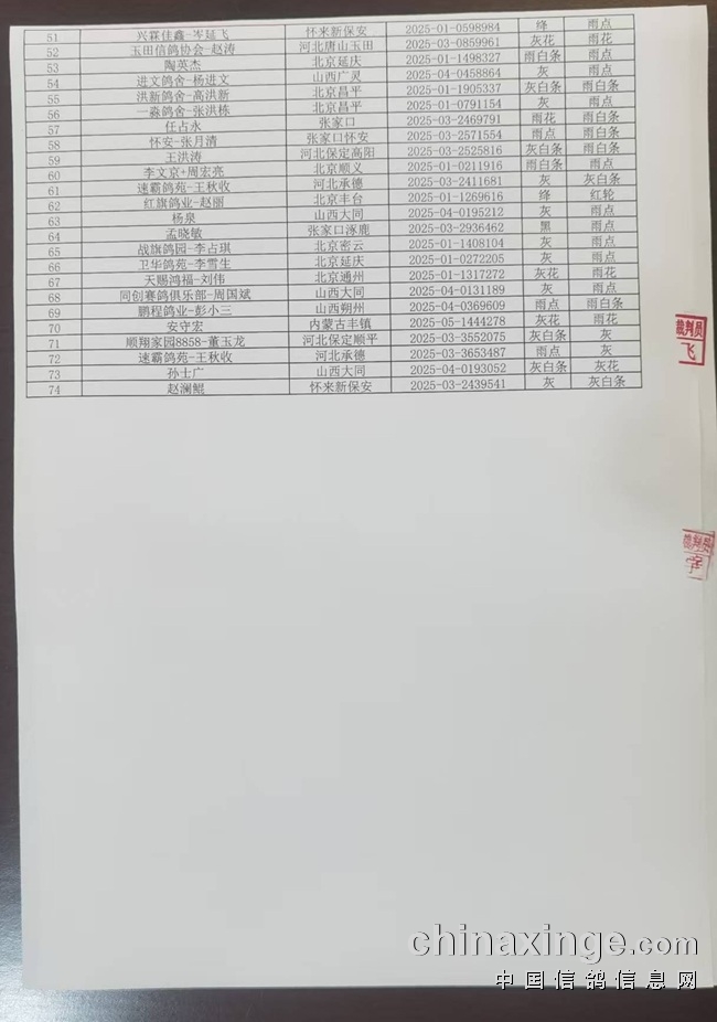 张家口盛世达公棚三关鸽王获奖名单