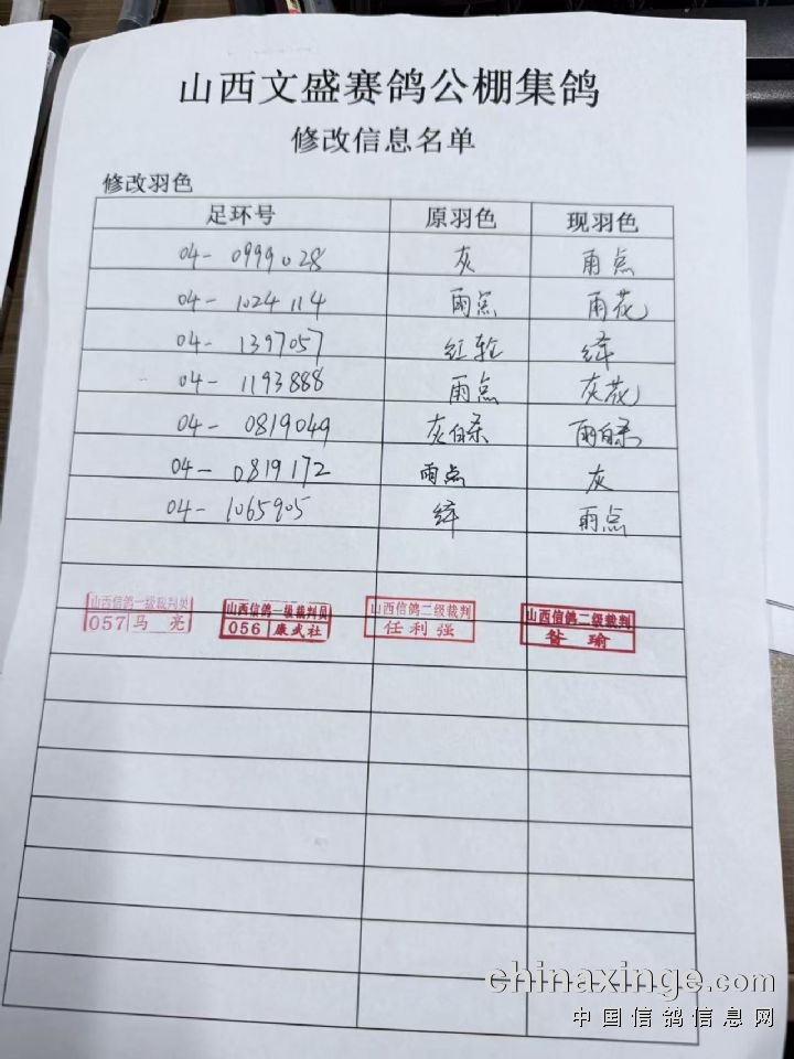 山西文盛赛鸽公棚嘉奖获奖名单