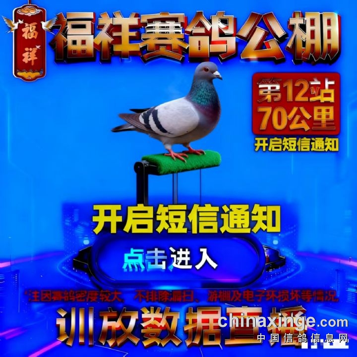 内蒙古福祥赛鸽公棚第十二站(70公里)训放数据直播