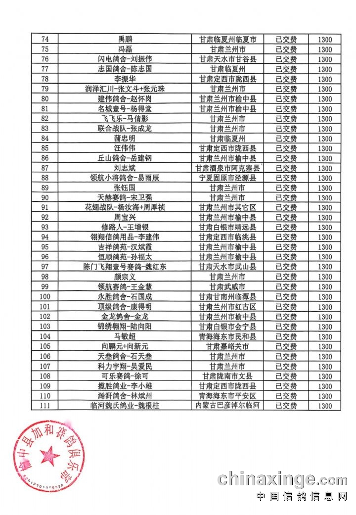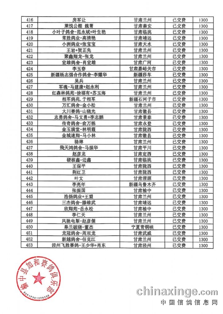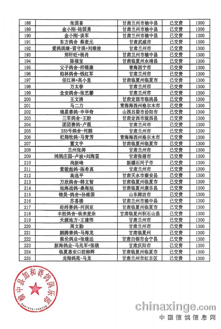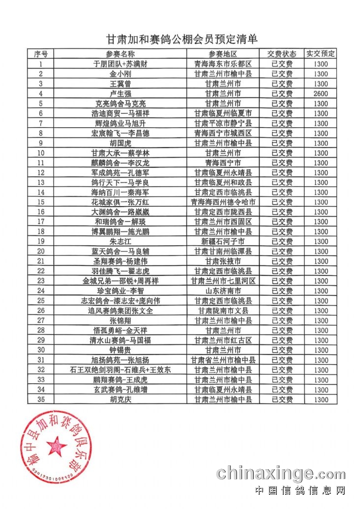 甘肃加和赛鸽公棚-会员预定清单2