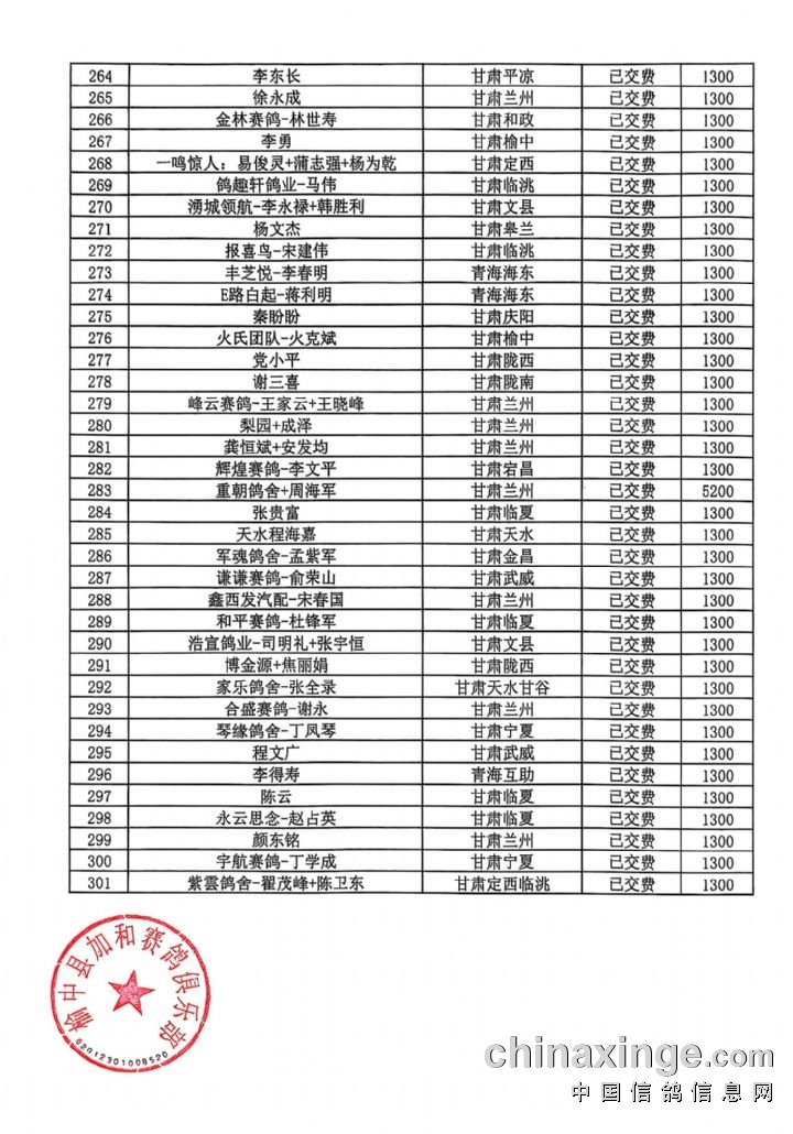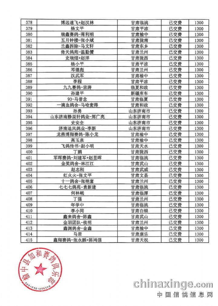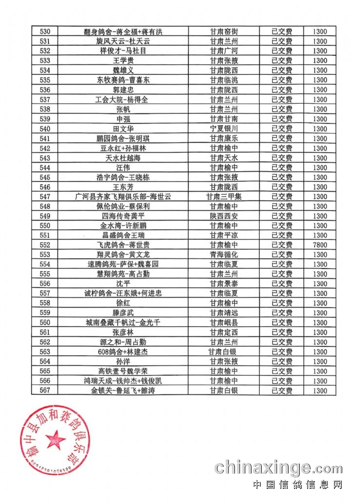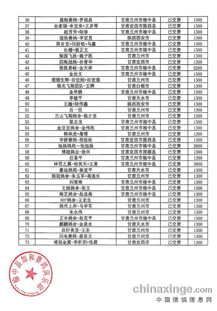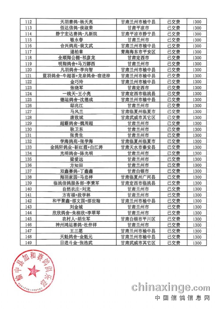 甘肃加和赛鸽公棚-会员预定清单2
