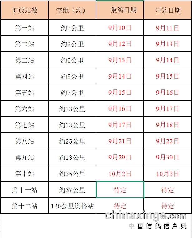 广东尔翔(秋棚)第十站35公里训放定于2025年10月2日晚集鸽,10月3日早上开笼!如遇恶劣天气,则改期另行通知!