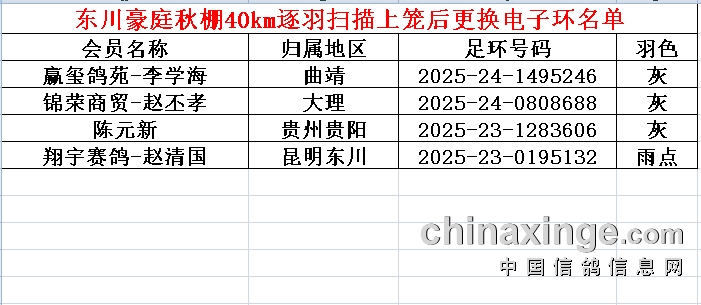 东川豪庭秋棚40km逐羽扫描上笼后更换电子环名单