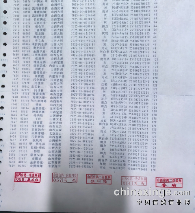 左云盛世腾飞公棚2025年加站赛集鸽名单(按顺序)
