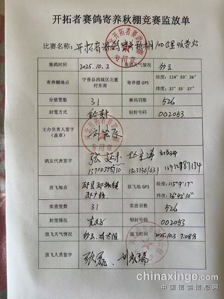 河北开拓者赛鸽寄养(秋棚)100公里开笼通知(附归巢数据直播网址)