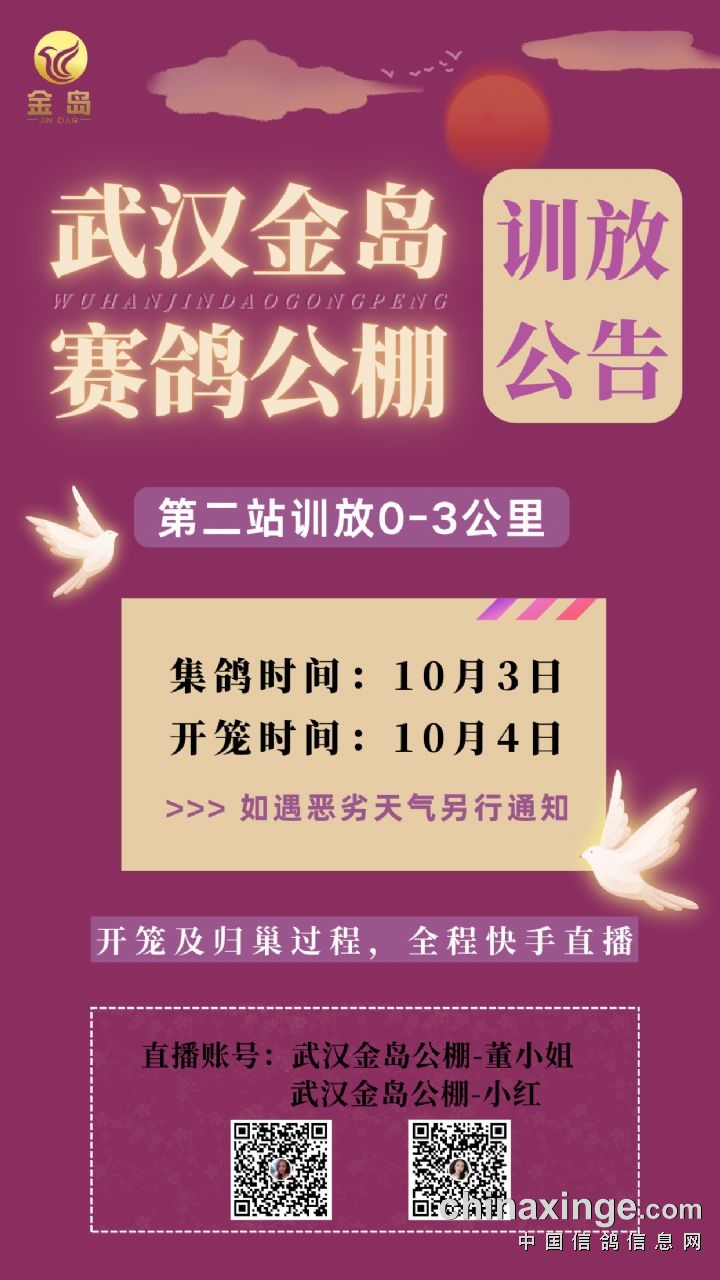 武汉金岛赛鸽公棚第二站训放公告