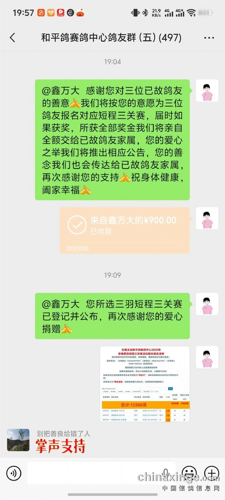 自[哀悼]和平鸽2025郑重公告公布以后我中心鸽友群内会员均对此事表示关心与支持。