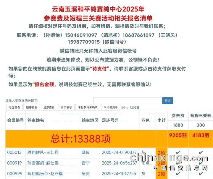 三羽赛鸽已完成“短程三关赛”登记。