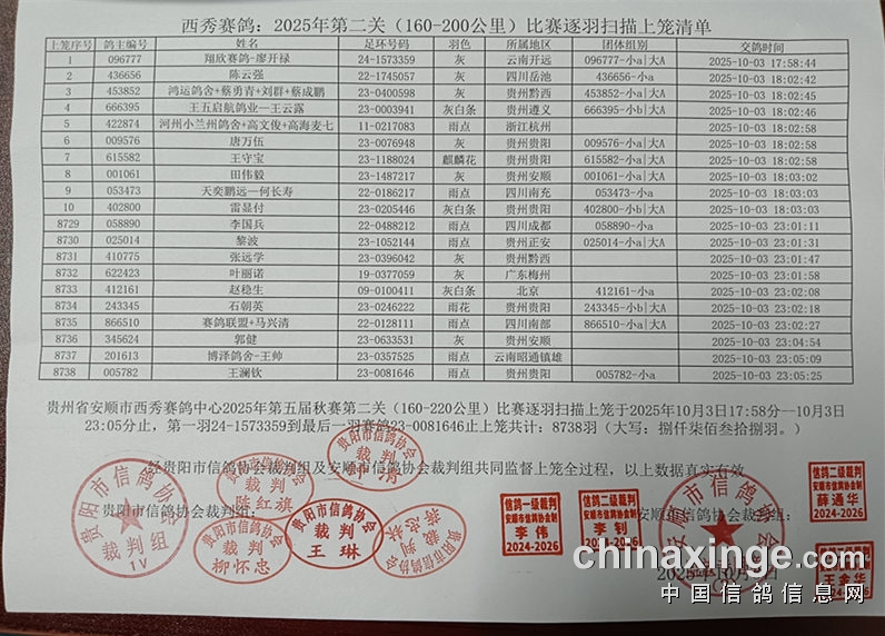 西秀赛鸽:2025年秋赛第二关160-200公里逐羽扫描上笼清单