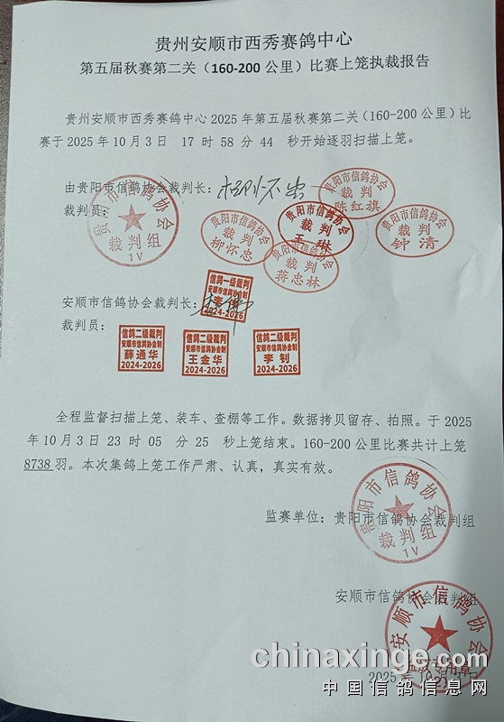 西秀赛鸽:2025年第五届秋赛第二关160-200公里比赛(实时在