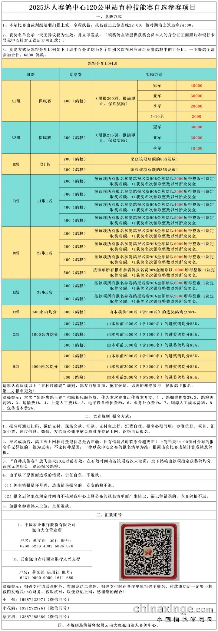 2025达人赛鸽中心:120公里站育种技能赛自选参赛项目规程