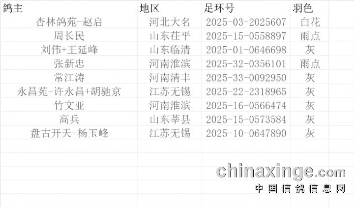 提示:如果此页面是训放清单,要想快速查询鸽环号,请按