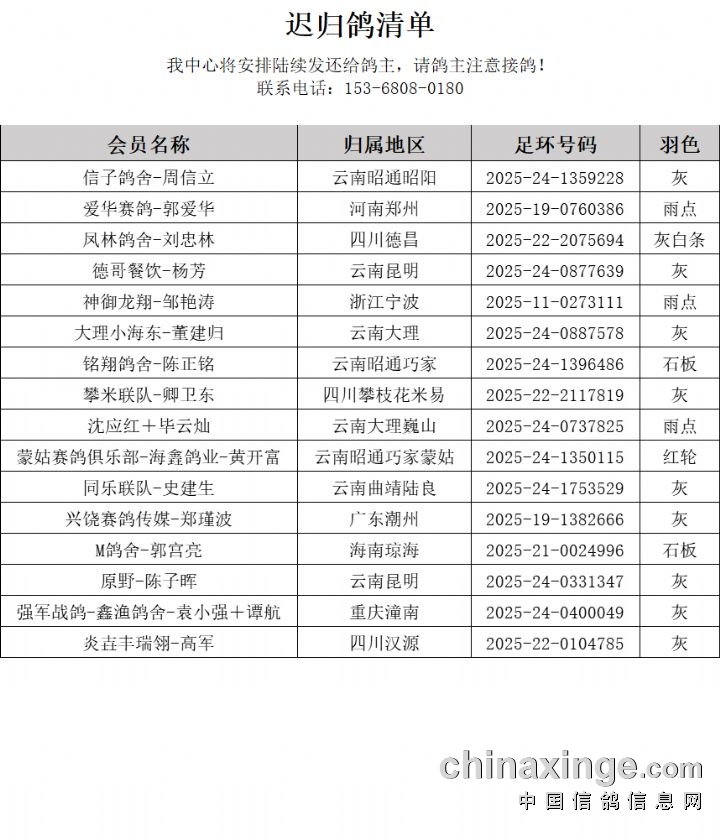 提示:如果此页面是训放清单,要想快速查询鸽环号,请按