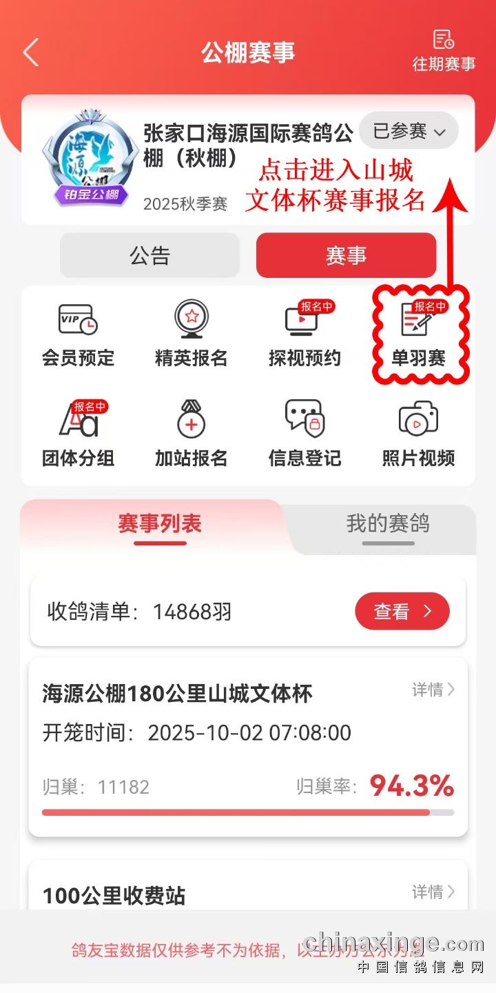 以此项参赛鸽报名为依据,按关赛500名内(含500名),先后依次录取,得平均奖金。