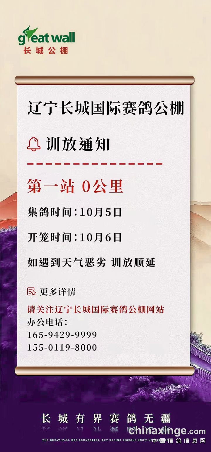 辽宁长城国际赛鸽公棚第一站0公里训放通知
