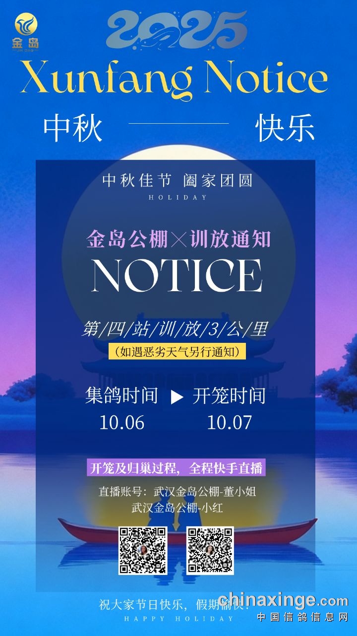 武汉金岛赛鸽公棚第四站训放,祝大家中秋节快乐!