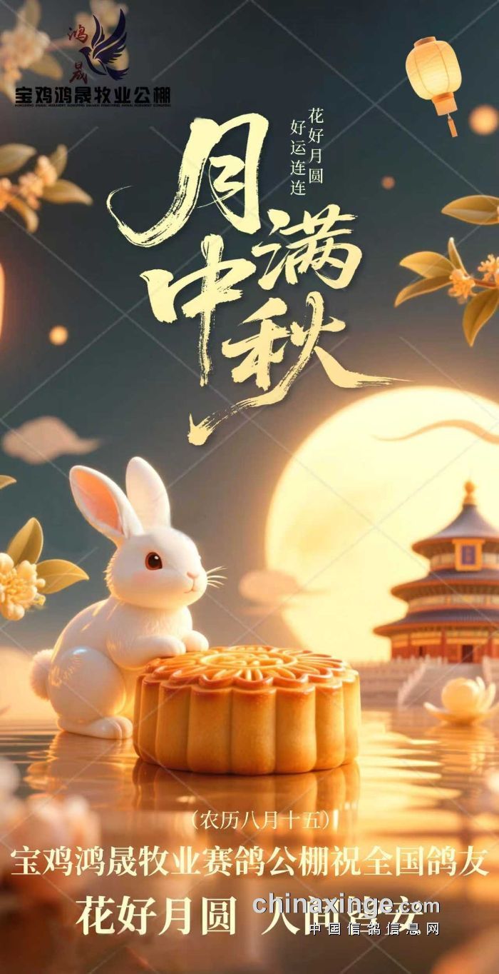 陕西宝鸡鸿晟牧业赛鸽公棚祝全国鸽友中秋节快乐!