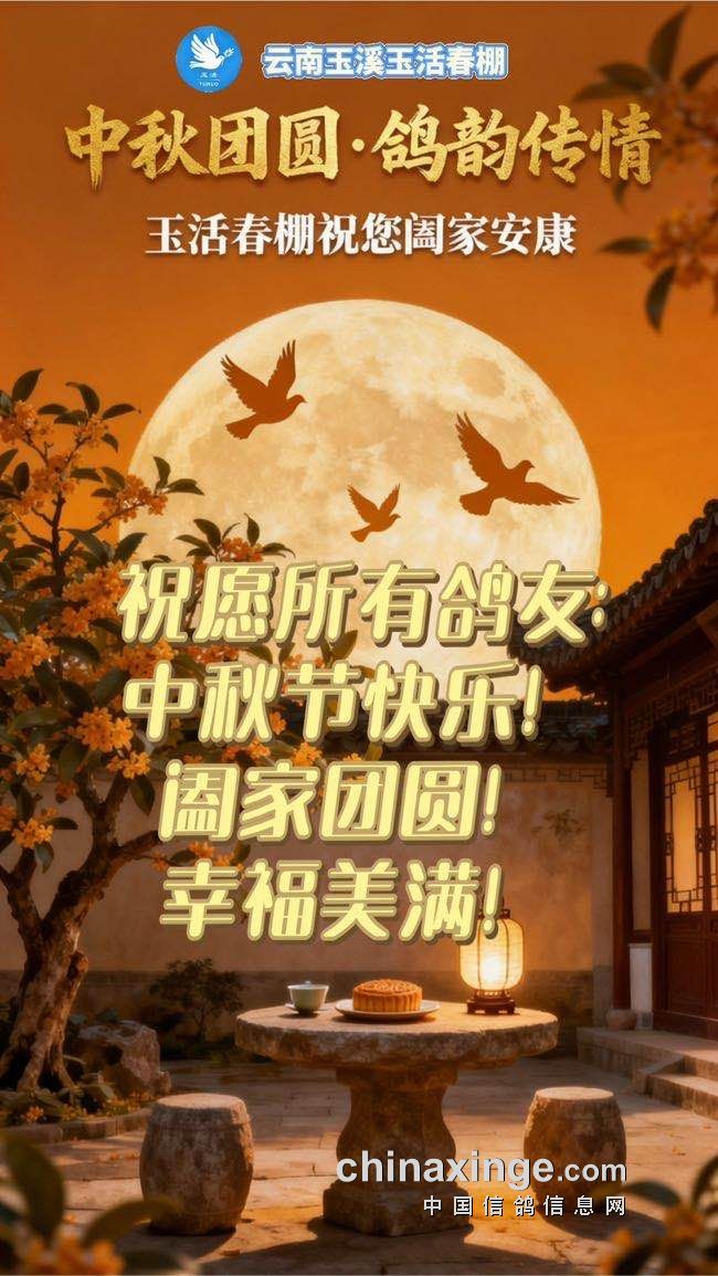 云南玉活(春棚) 祝:全国各地鸽友,中秋节快乐!阖家团圆!幸福美满!