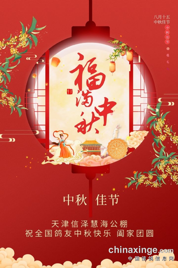 天津信泽慧海公棚祝全国鸽友中秋节快乐!