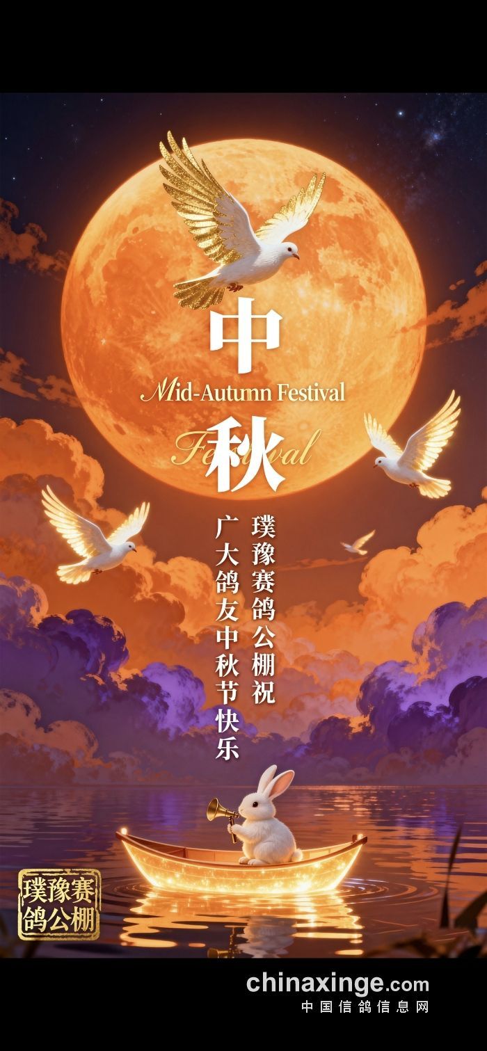 祝广大鸽友及服务于赛鸽领域的一线工作人员,中秋快乐,万事如意,月圆福圆人团圆。