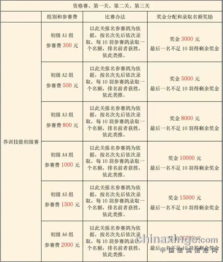 养训技能赛参赛鸽自开笼时间起至当日晚18点为有效报到时间。如司放当日无鸽归巢,则当关养训技能赛结束,退还养训技能赛报名费用;如在有效报到期内获奖名次未报满,则剩余名次奖金由当关上笼参加该奖项的上笼鸽均分(不包括获奖鸽)。