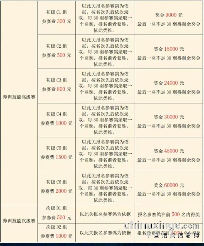 1. 集鸽及比赛当天不接受养训技能赛报名,请大家注意时间节点,报名截止后系统订单生成将不可更改。