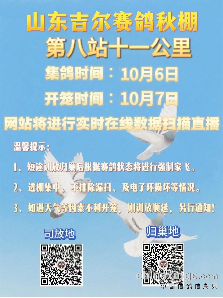 山东吉尔赛鸽秋棚第八站11公里训放扫描直播链接
