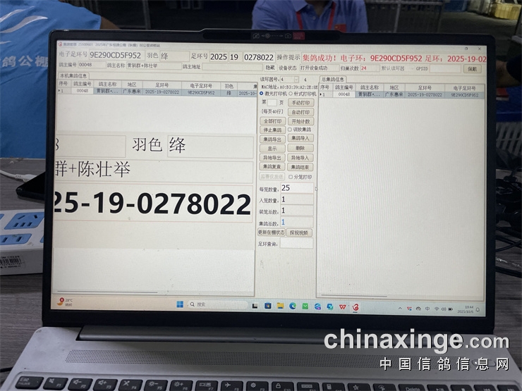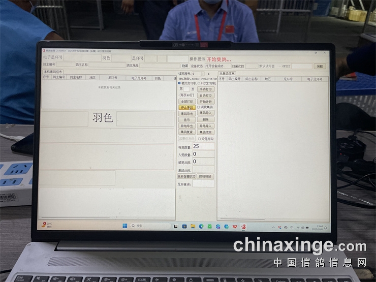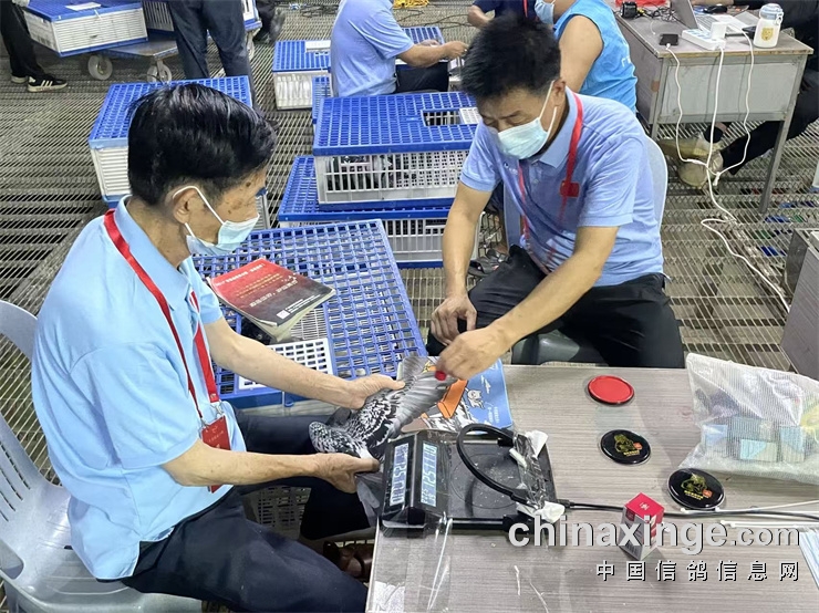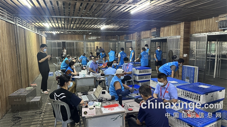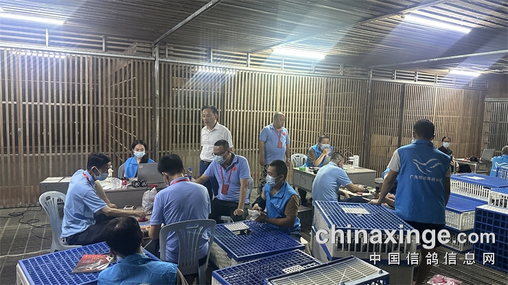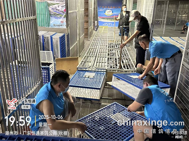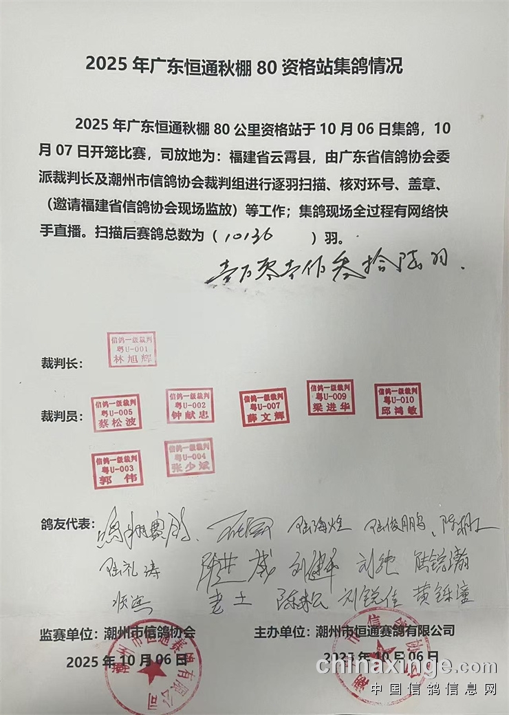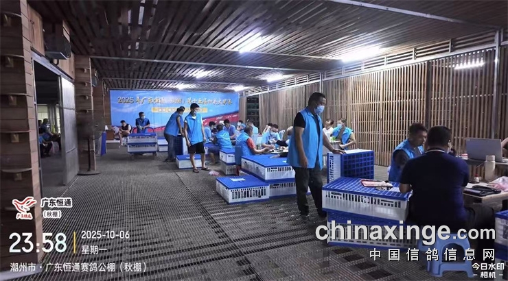 2025年广东恒通秋棚80公里资格站集鸽由潮州市裁判组进行逐羽扫描、盖章、上笼等集鸽工作,共集鸽 10136 羽;