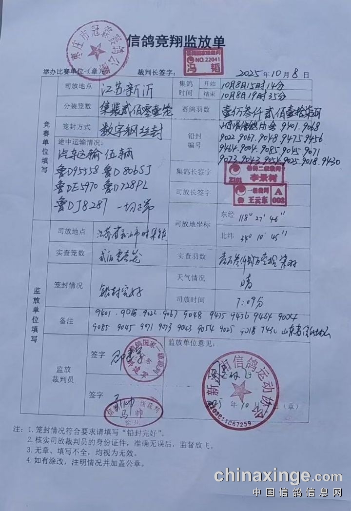 山东冠霖赛鸽公棚第九站(40公里)训放公告