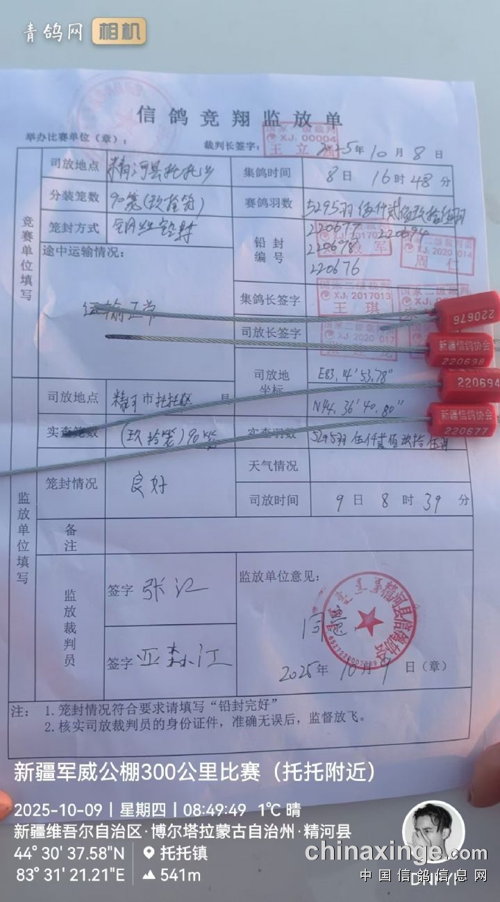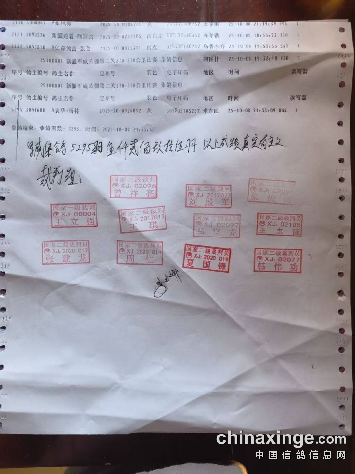 新疆军威公棚第二关270-320公里前100名获奖名单