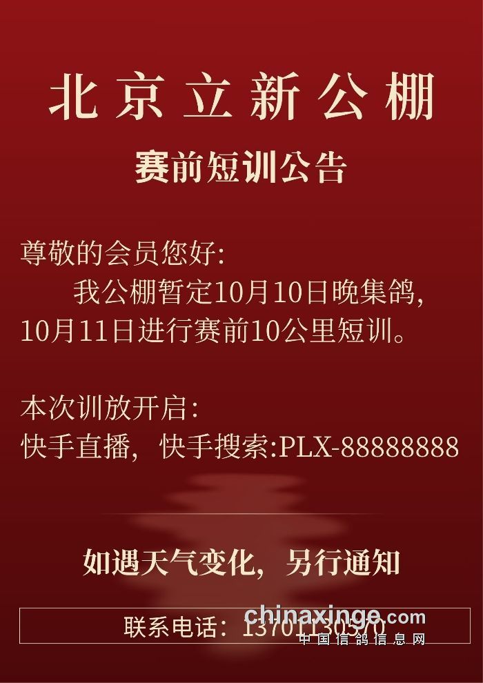 北京立新公棚赛前短训公告