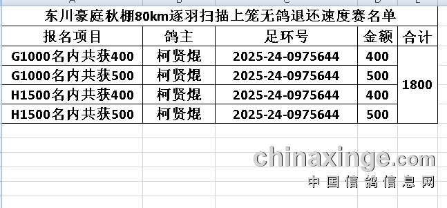 东川豪庭秋棚120km逐羽扫描上笼清单