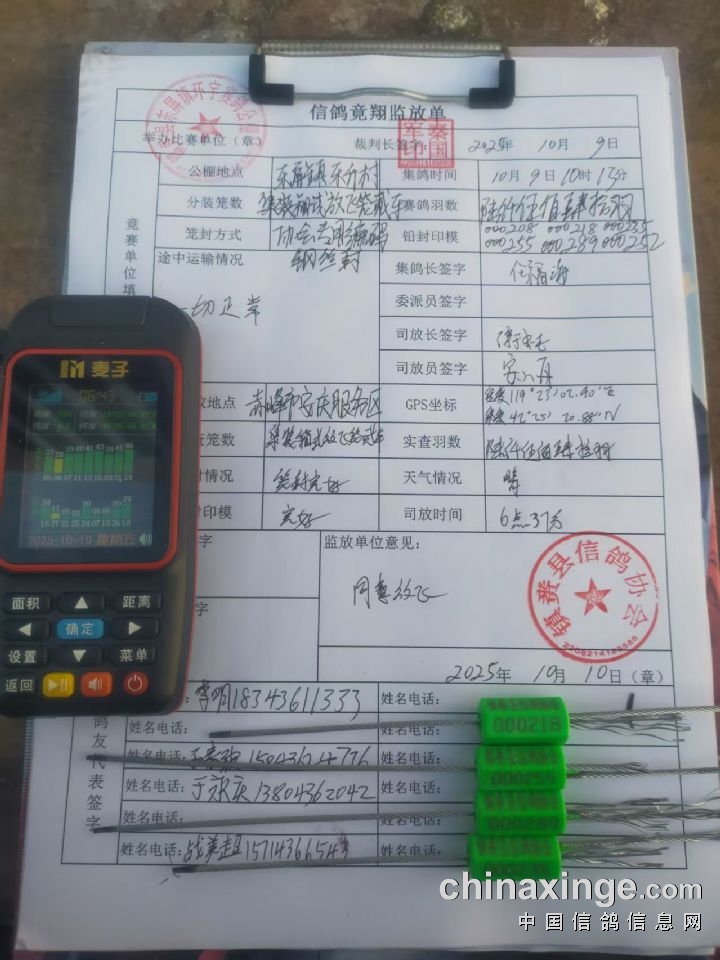 环宇公棚(小)520公里决赛集鸽数据(按姓名排序)