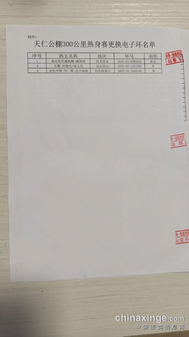 天仁公棚300公里“山城文体杯赛”未上笼退费名单