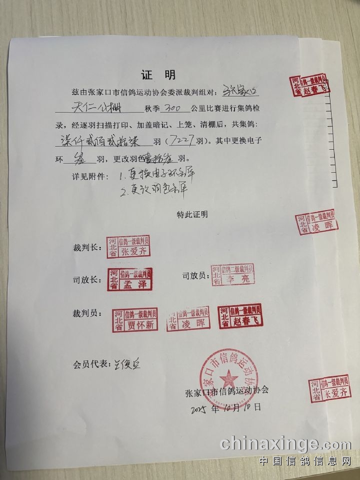 天仁公棚300公里“山城文体杯赛”未上笼退费名单