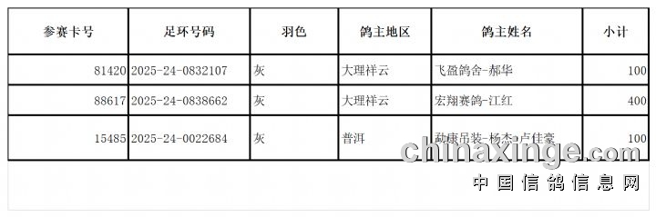 易冠赛鸽寄养棚55公里逐羽扫描上笼清单(不排除漏配漏扫)
