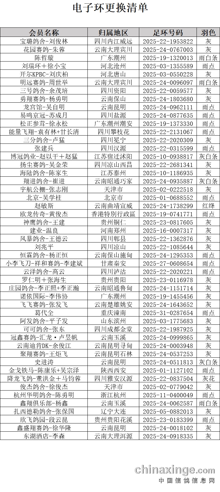 2025年天南铜都(大秋棚)100公里归巢受伤鸽清单