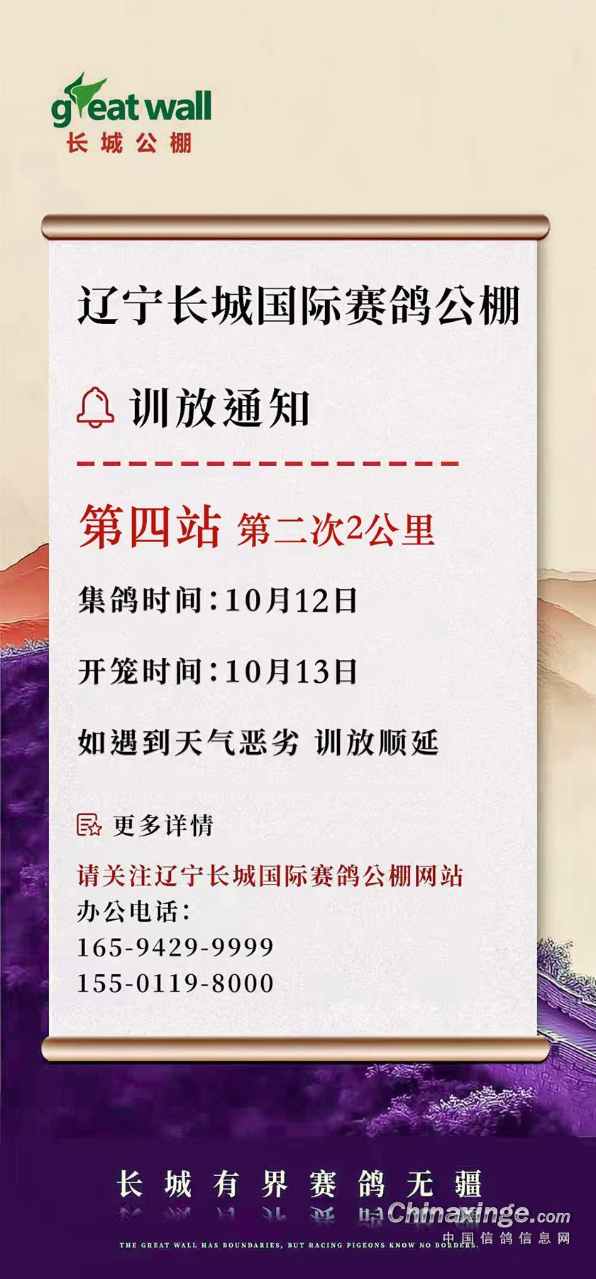 辽宁长城国际赛鸽公棚第四站第二次2公里训放通知