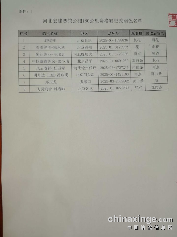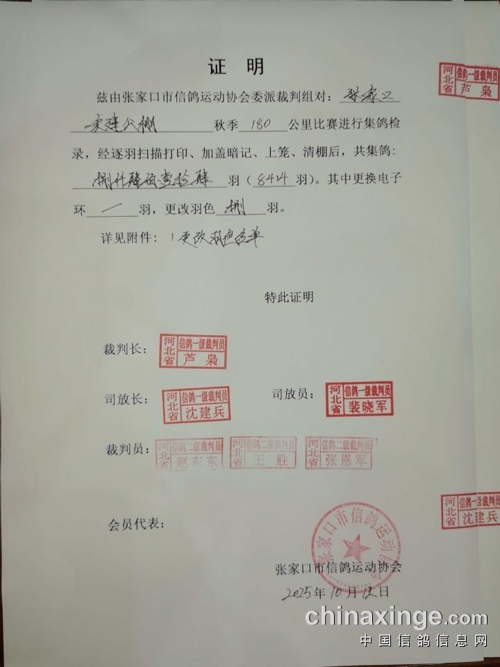 河北宏建赛鸽公棚180公里资格赛前30名证明