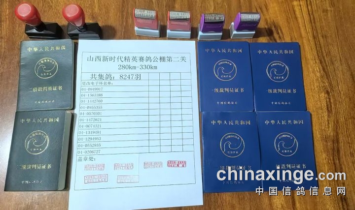 山西新时代精英赛鸽公棚第二关280km-330km监赛凭证