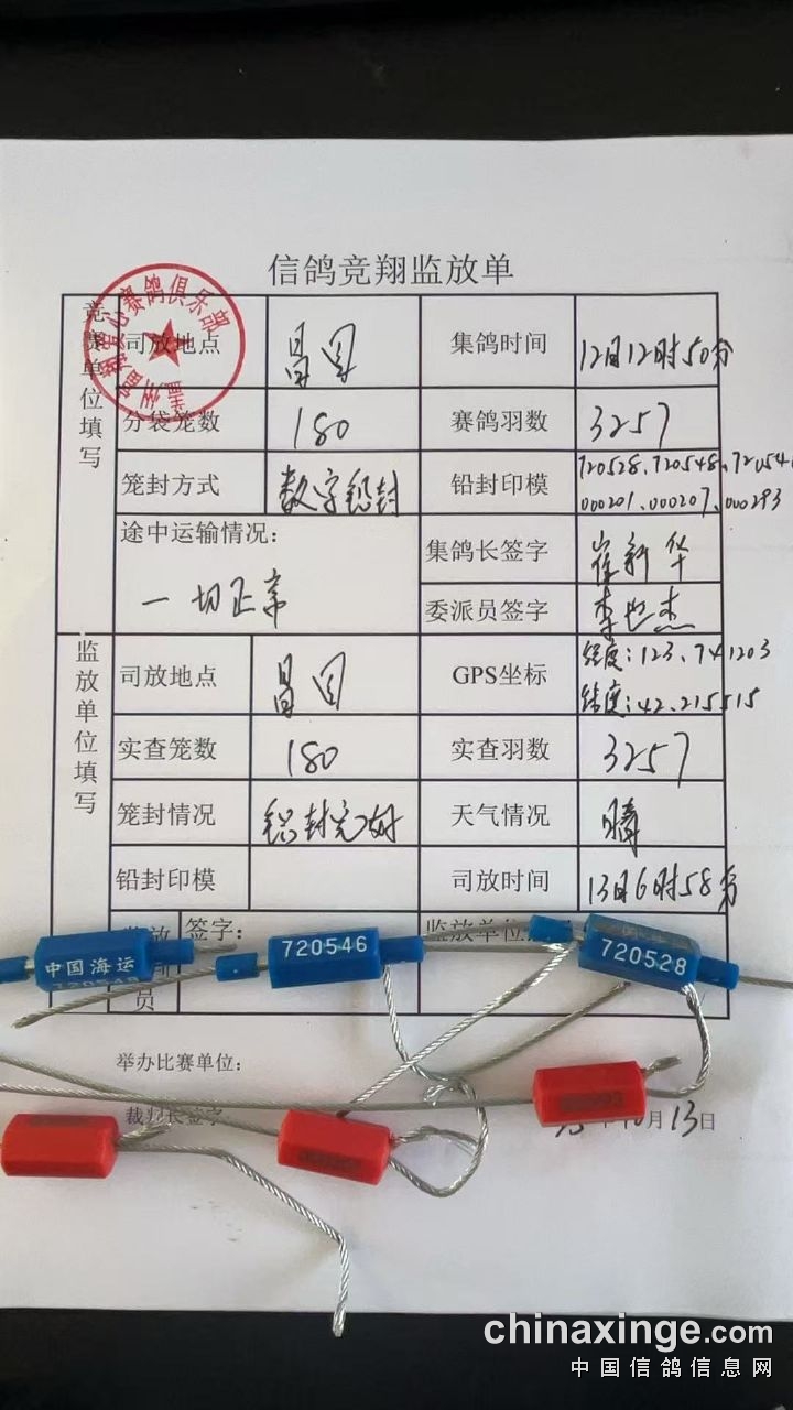 2025年辽宁富翔爱心公棚200公里资格赛逐羽扫描清单
