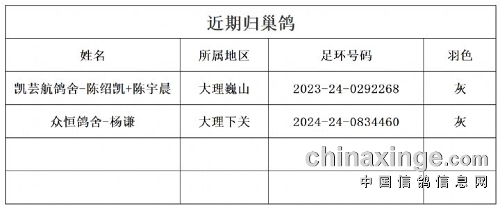 2025达人赛鸽中心:近期归巢鸽