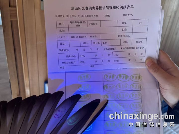 第八名 棚号:024 寄养人:楚风赛鸽-张滨-王赛 环号:2025-03-1023516 羽色:雨白条
