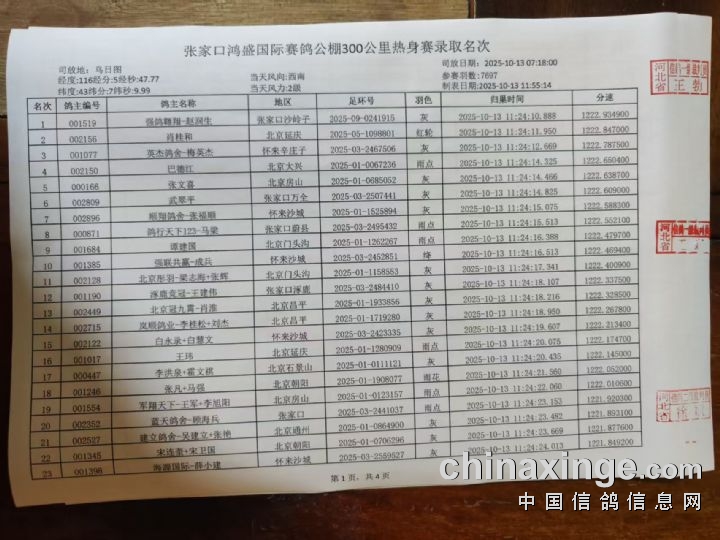 提示:如果此页面是训放清单,要想快速查询鸽环号,请按