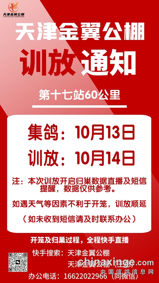 天津金翼公棚第十七站60公里训放改5公里通知及数据直播链接