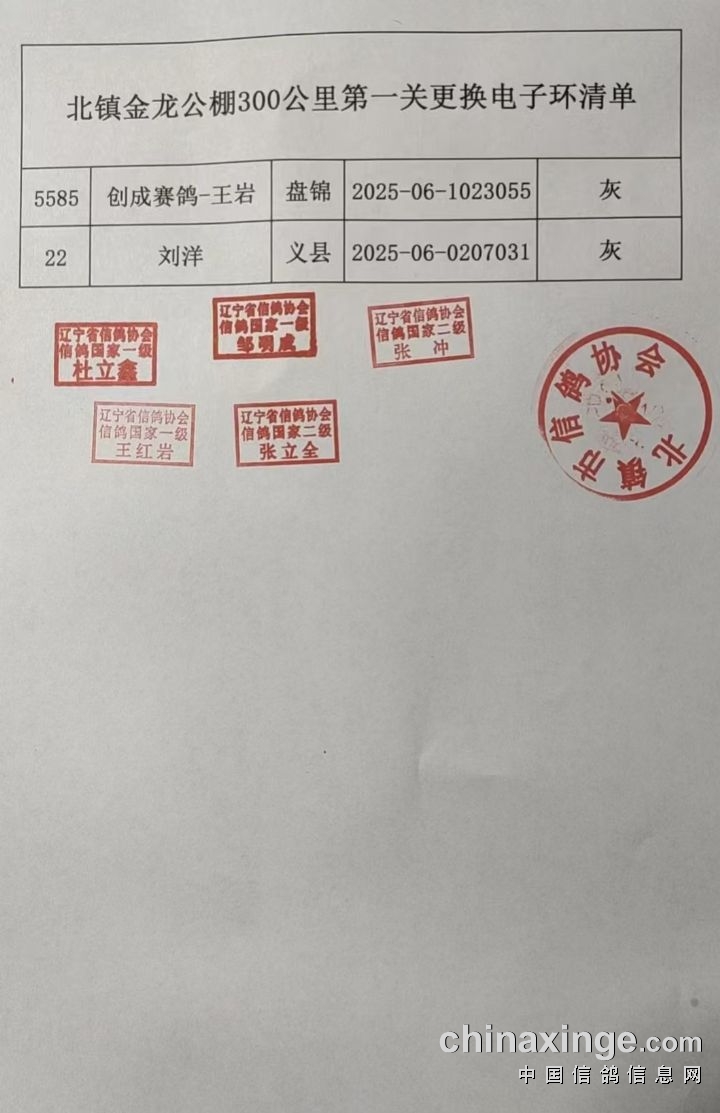 北镇金龙公棚300公里开笼信息及成绩直播链接
