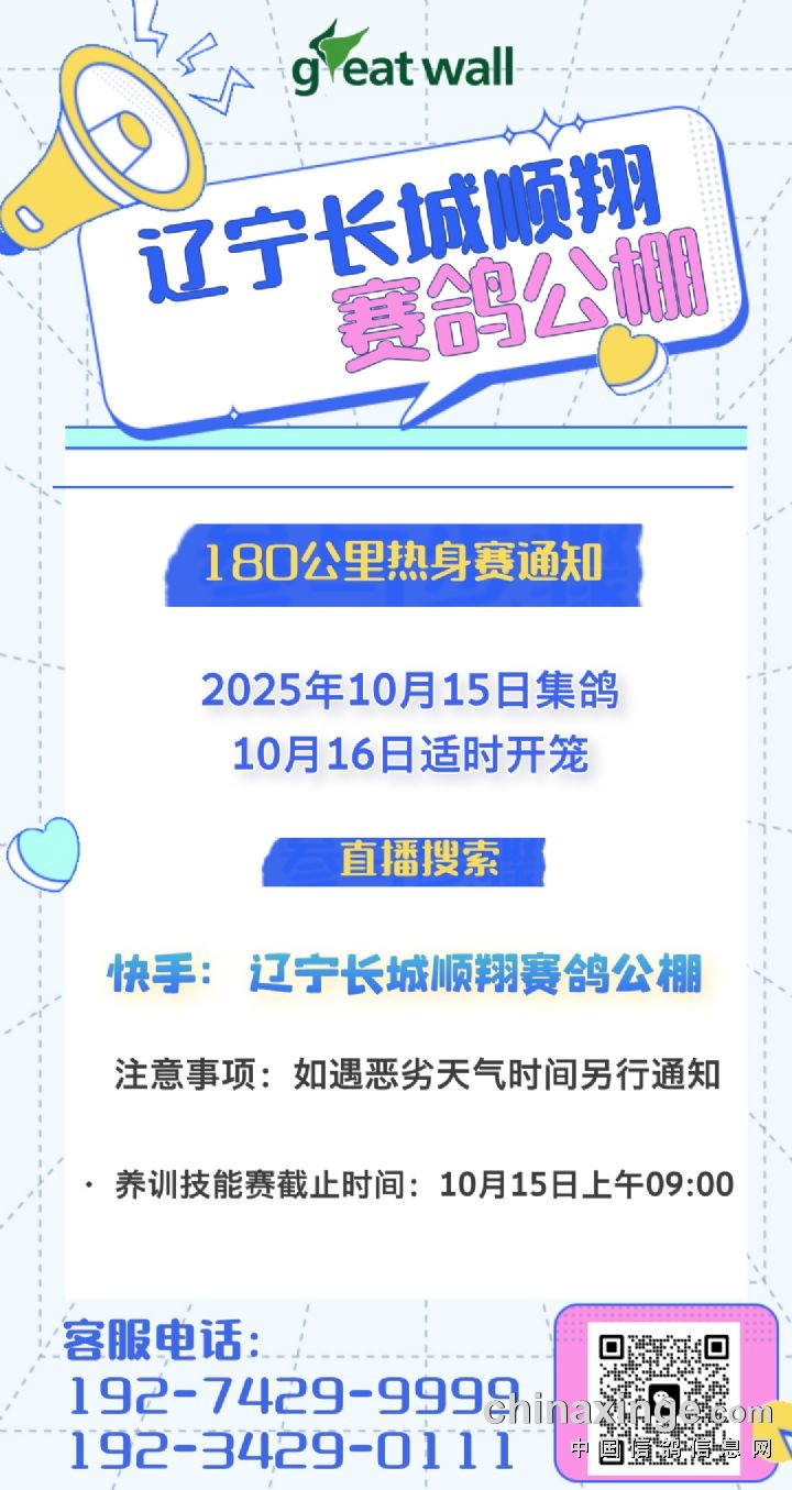辽宁长城顺翔赛鸽公棚500公里决赛养训技能赛报名公告