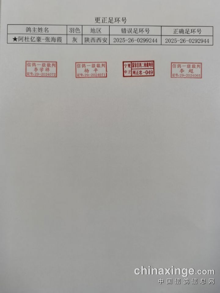 宁夏中卫赛鸽公棚180公里热身赛更正足环号名单