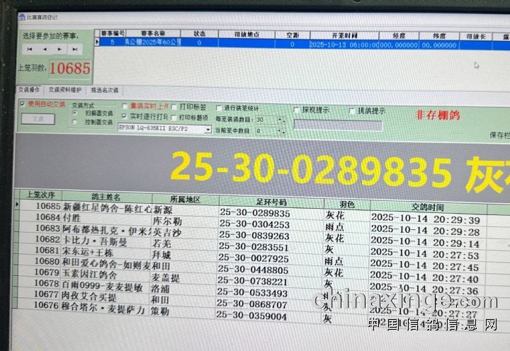 和田玉赛鸽公棚2025年(第十三站第一次60公里)训放数据直播
