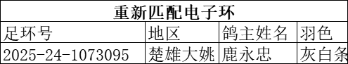 勝利飞翔公棚 40公里逐羽扫描重新匹配电子环清单